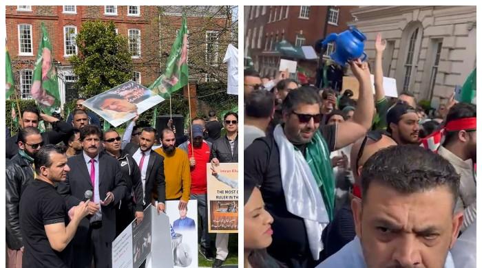 PML-N protests outside Jemima Goldsmith's house, PTI responds with demonstration outside Avenfield flats